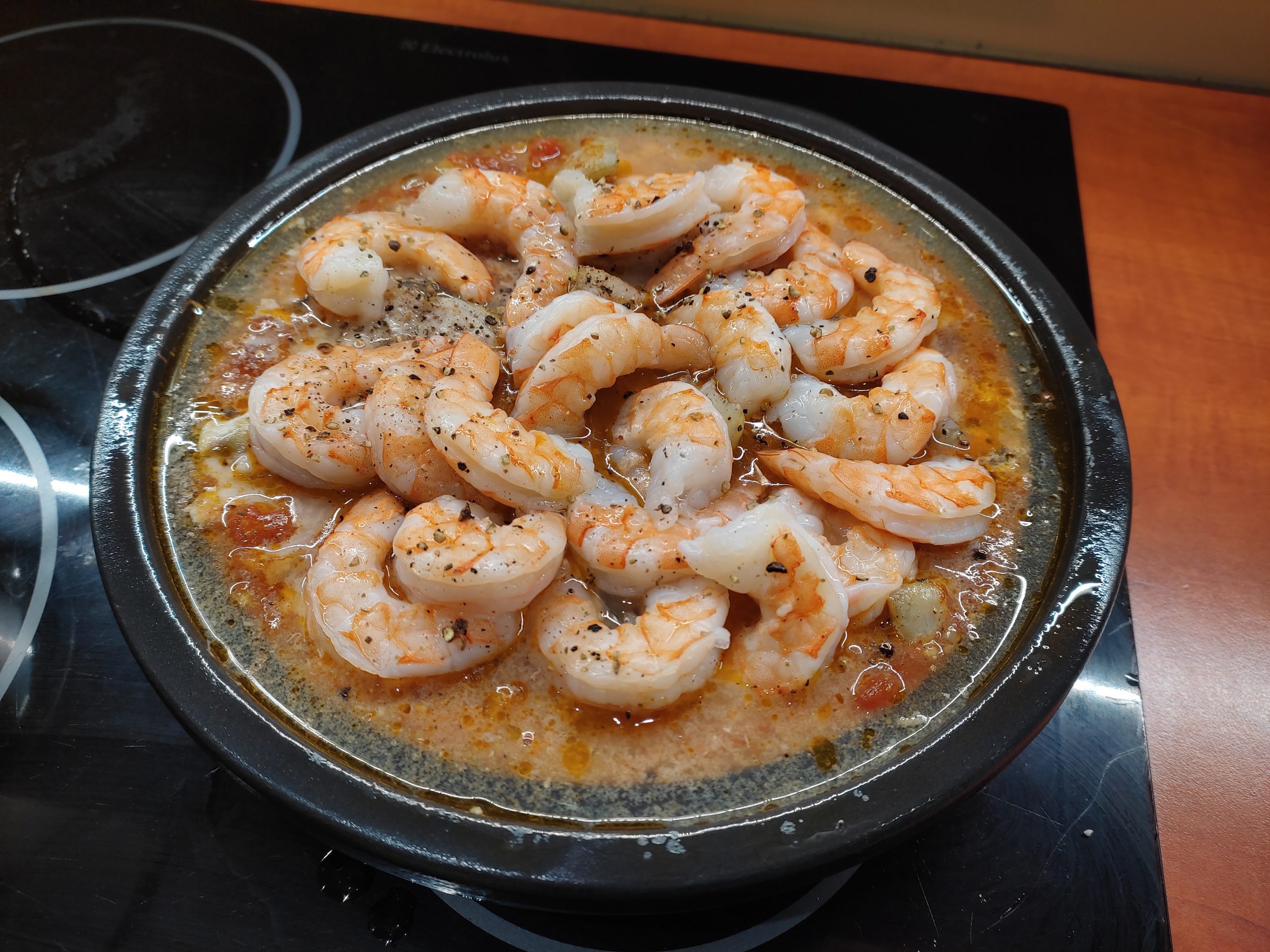 Išėmę, pridedame krevečių. Apibarstome druska, pipirais ir dar patroškiname 10 minučių 1800 C orkaitėje.