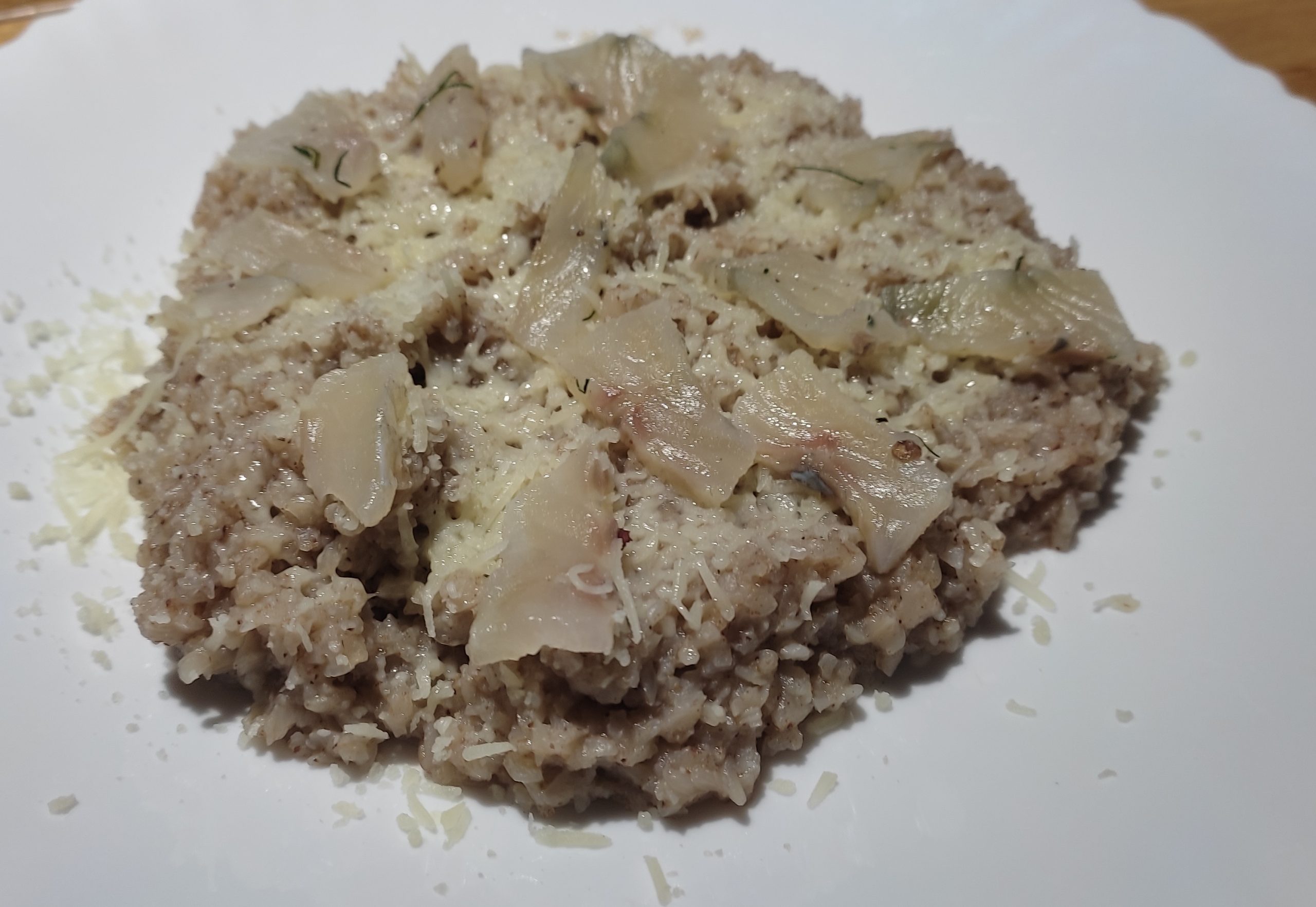 Išvirtus grikių dribsnius apibarstome kietu sūriu ir uždedame sūdyto eršketo.